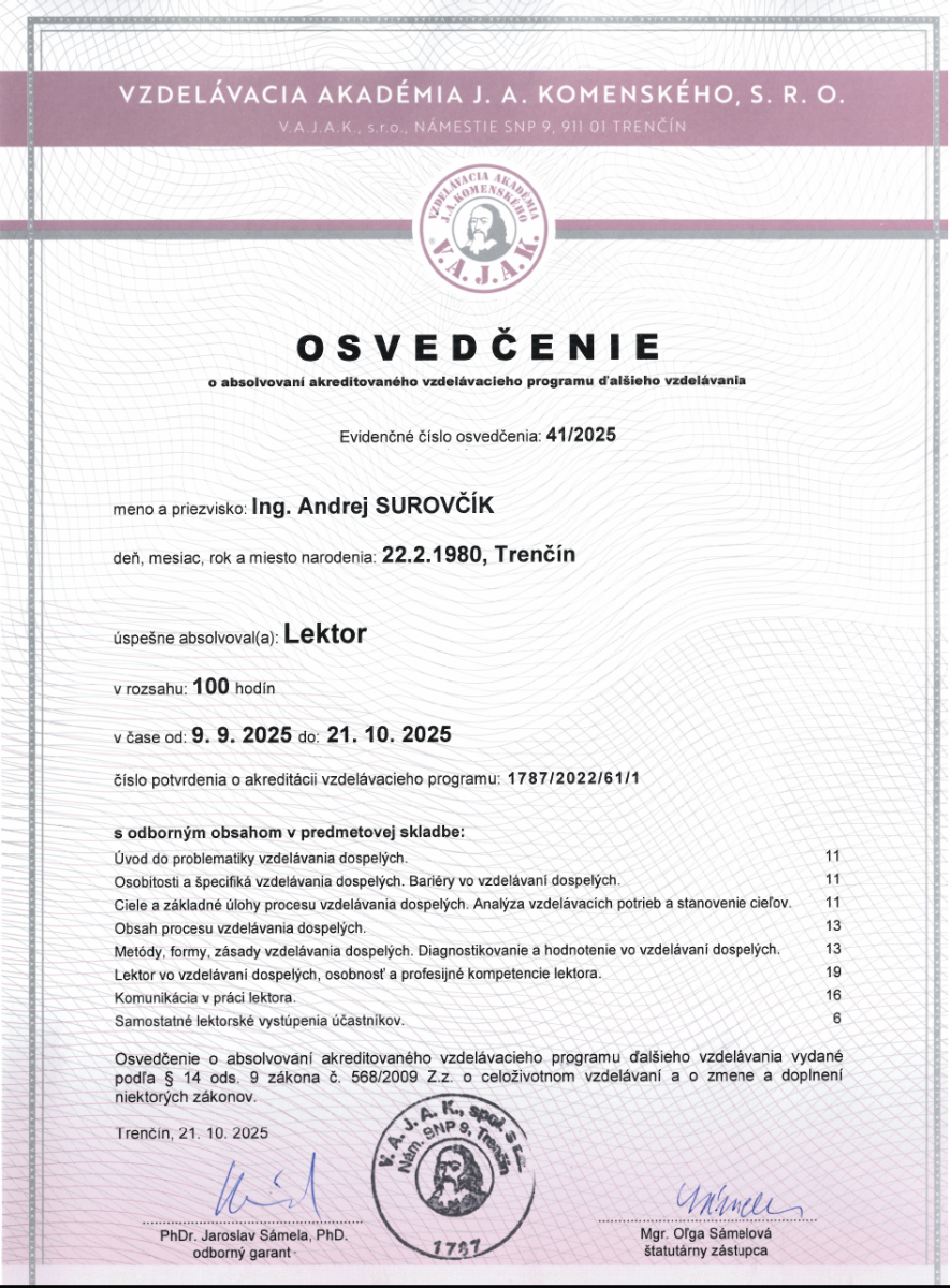 Ing.Andrej Surovčík, Bošáca -Zabudišová 912
